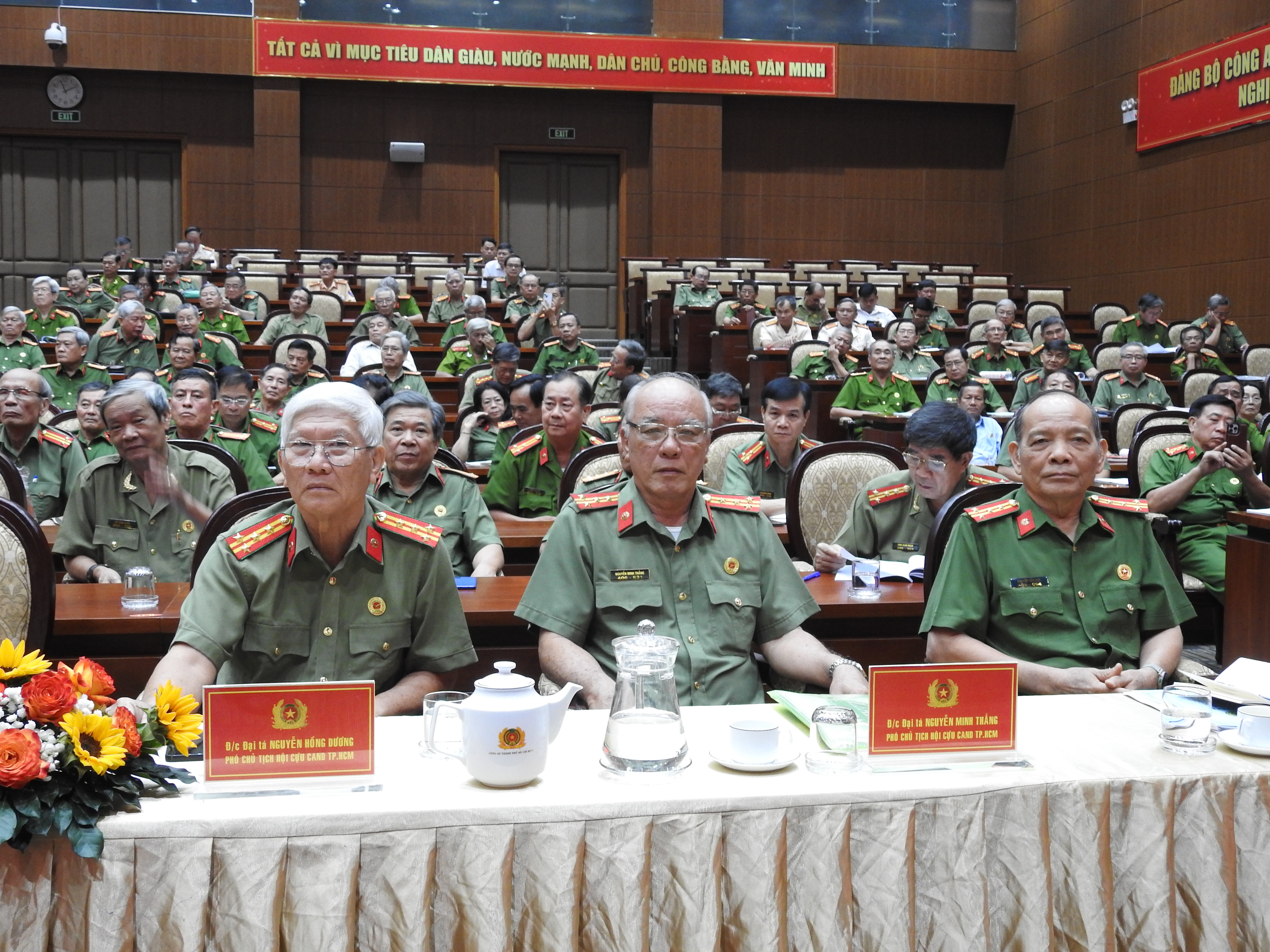 Thiếu tướng Tạ Văn Đẹp nhấn mạnh, thực tiễn thời gian qua cho thấy, các cấp Hội Cựu CAND Thành phố đã phát huy tốt truyền thống vẻ vang của lực lượng, tích cực tham gia tuyên truyền chủ trương của Đảng, chính sách, pháp luật của Nhà nước; phối hợp nắm tình hình, hòa giải mâu thuẫn ngay từ cơ sở; tham gia xây dựng phong trào toàn dân bảo vệ an ninh Tổ quốc; triển khai hiệu quả nhiều hoạt động an sinh xã hội, nghĩa tình đồng đội. “Những đóng góp thiết thực, trách nhiệm và đầy tâm huyết đó tiếp tục khẳng định vai trò quan trọng của Hội Cựu CAND trong việc giữ vững ổn định an ninh, trật tự, củng cố vững chắc thế trận an ninh nhân dân, thế trận lòng dân, tạo nền tảng xã hội bền vững cho sự phát triển của TP.HCM”, Phó Giám đốc Công an Thành phố khẳng định.