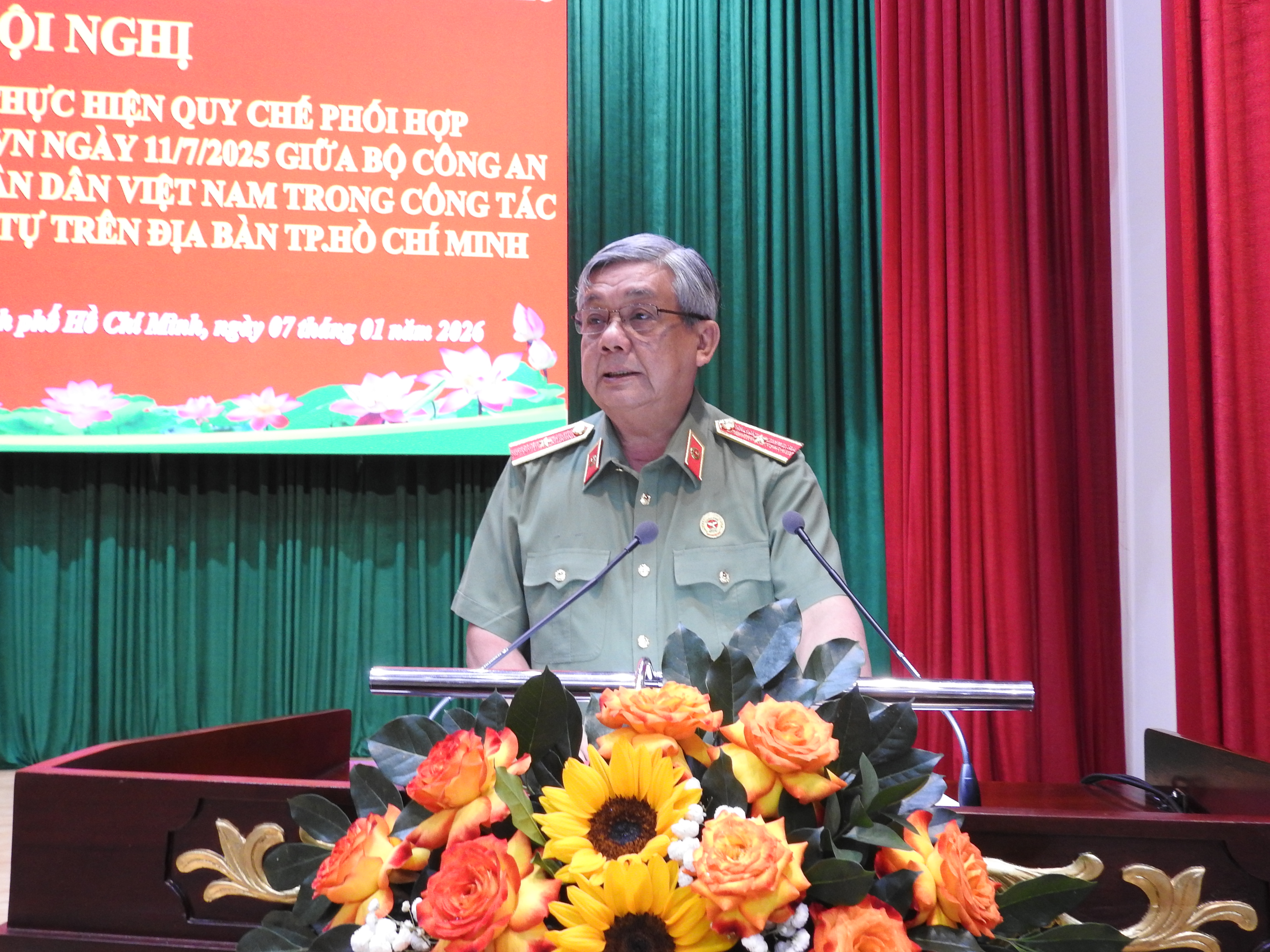 Thiếu tướng Tạ Văn Đẹp, Phó Giám đốc Công an TP.HCM phát biểu tại hội nghị.